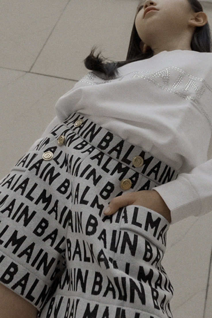 La collezione Balmain Kids celebra il look mini-me: lo stesso spirito couture e la grinta di Balmain, pensati per i bambini che vogliono brillare insieme ai grandi.